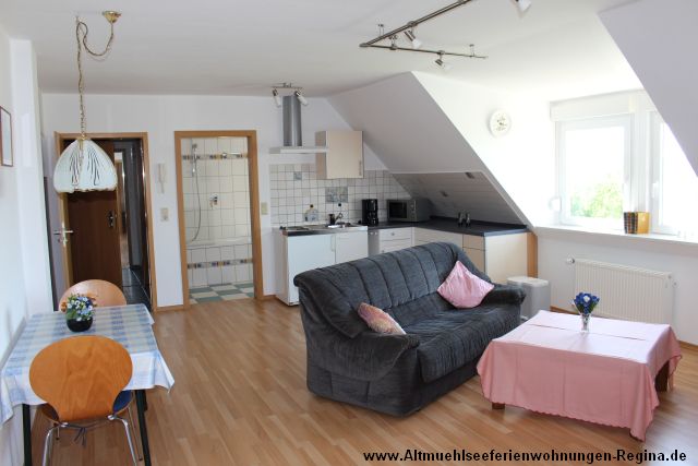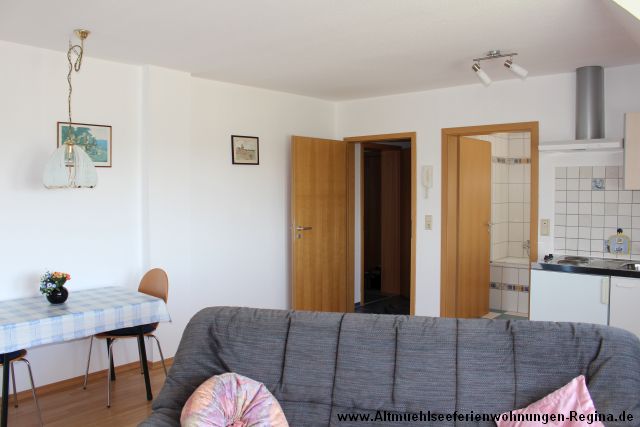 Leider in diesem Jahr 2025 nicht in Betrieb Unsere schöne Wohnung Süd ist im oberen Wohngeschoss und hat eine Grundfläche von ca 55 qm. Sie verfügt über ein Bad, ein Schlafzimmer, ein Wohnzimmer, Flur und eine gemütliche Küchenzeile. Sie ist ideal für 2 Personen zugeschnitten. Die Wohnung ist im gemütlichen Wohnstil liebevoll eingerichtet. Alle notwendigen Küchenutensilien vom Teller bis zur Kaffeemaschine sind vorhanden. Das Bad verfügt über eine Badewannen/Duschkombination. Durch die Wohnküche kann ganz bequem der Südwest Balkon mit Tisch und zwei Stühlen erreicht werden. Für den Sonnenschutz ist auf dem Balkon ein Sonnenschirm vorhanden. SAT-TV und WLAN stellen wir auf Wunsch bereit und ein Fahrzeugstellplatz mit Lademöglichkeit gehört mit zu dieser Wohnung, genauso wie die verschließbare Unterbringung Ihrer mitgebrachten Fahrräder für die Erkundungsausflüge rund um den Altmühlsee und das Altmühltal.